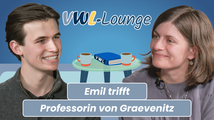 In dieser Folge (Link über das Bild) spricht Emil Hettich, zur Zeit der Filmaufnahmen Student des Bachelorstudiengangs VWL im zweiten Semester, mit Prof. Kathrine von Graevenitz, Ph.D., Professorin für Empirische Umweltökonomik. Themen sind u. a. der Beitrag der VWL zur Lösung der im Rahmen der Energiewende anstehenden Probleme, der Schutz der Wettbewerbsfähigkeit der deutschen und europäischen Industrie sowie die hohe Lebensqualität der Stadt Mannheim und ihres Umlands.
